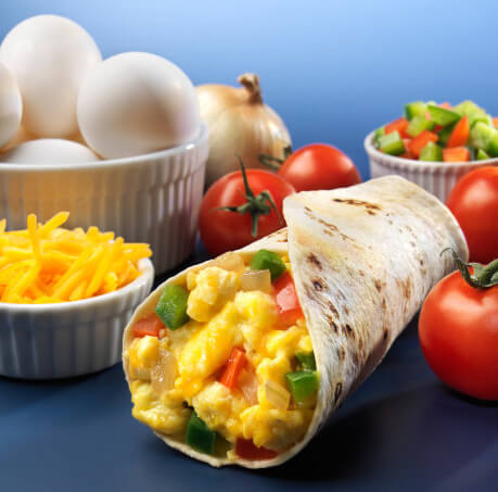 - Whisk two eggs with a splash of milk, season, and cook with diced veggies (spinach, peppers, tomatoes).